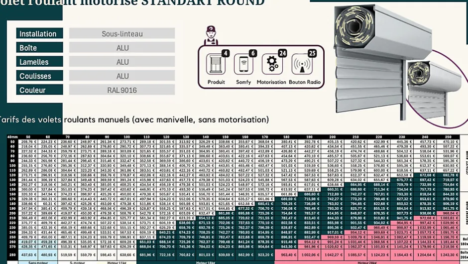 3 in 1 Volet roulant motorisé STANDART ROUND RAL 9016 Sompfy Oximo Radio (L.: 2000 mm x H.: 2000 mm)