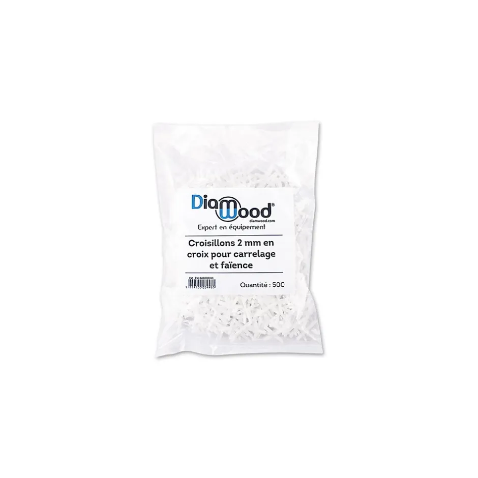 Les croisillons 2 mm DIAMWOOD sont conçus pour offrir un nivellement précis et un espacement régulier entre chaque carreau, garantissant une pose de carrelage ou de faïence parfaitement alignée. Grâce à leur forme en croix ajourée, ils simplifient la mise en place tout en assurant une excellente adhérence du joint. Ce système de calage professionnel s’adresse aussi bien aux artisans qu’aux bricoleurs recherchant un résultat net et durable.Chaque croisillon est fabriqué en rigide et résistant, capable de supporter la pression exercée lors de la pose et du séchage des carreaux. Leur structure ouverte permet au mortier ou à la colle de circuler librement, favorisant un meilleur maintien du carrelage et une finition homogène. Le design ajouré renforce également la solidité du joint dans le temps, limitant les risques de fissures ou de décollement.Pour une efficacité maximale, il est recommandé d’enfoncer les croisillons d’au moins 3 mm à l’intérieur des carreaux. Cette profondeur permet au joint de recouvrir complètement la croix, assurant une parfaite étanchéité et une finition lisse. Que ce soit pour la pose de grès cérame, de faïence murale ou de carreaux de sol, ces croisillons conviennent à toutes les configurations.La boîte contient 500 croisillons de 2 mm d’épaisseur, offrant une grande quantité adaptée aux chantiers de petite ou moyenne surface. Chaque élément mesure 27 mm de long pour 3 mm de haut, garantissant stabilité et précision.Forte de plus de 15 ans d’expérience, la marque DIAMWOOD met à disposition des professionnels du BTP des accessoires fiables et performants pour une pose de carrelage simplifiée, rapide et durable.