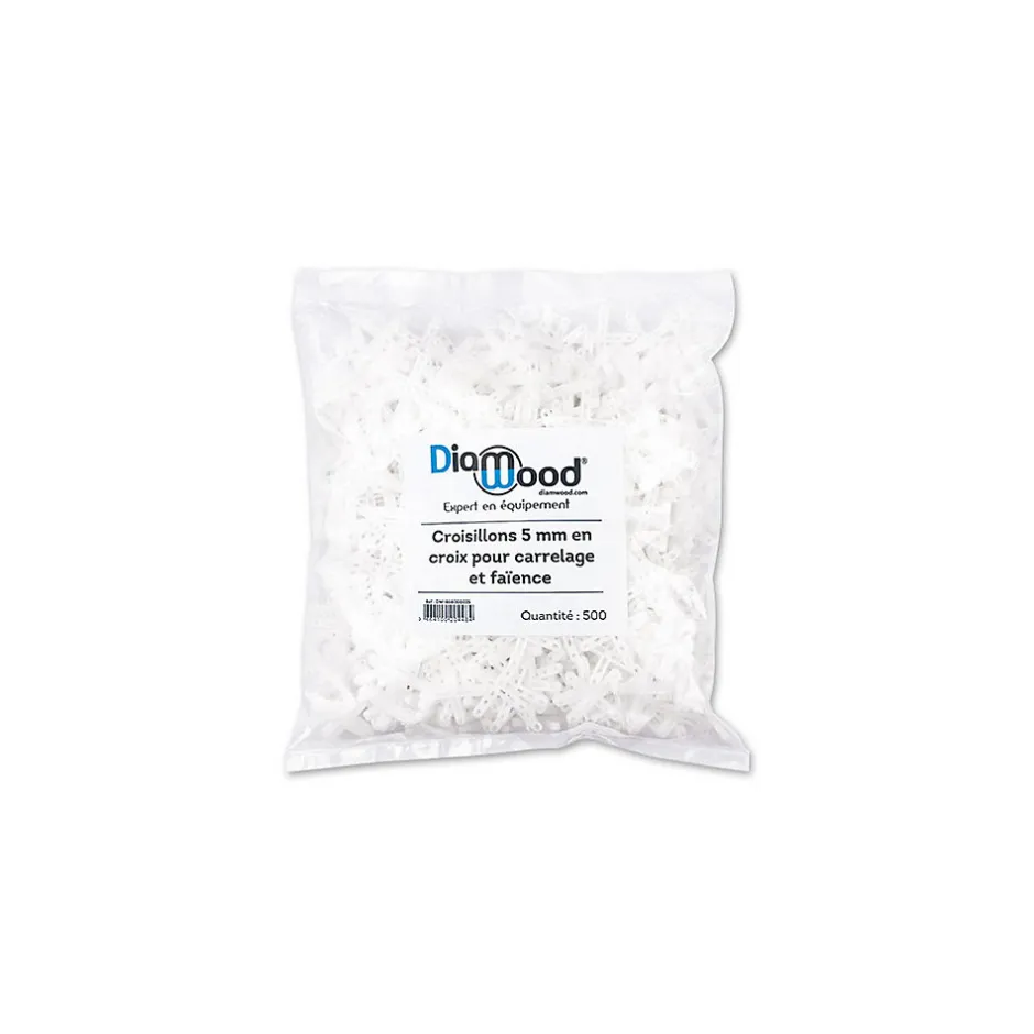 Découvrez nos croisillons nivelants de carreleur, des outils ingénieux conçus pour vous offrir un joint parallèle de 5 mm, assurant ainsi une installation impeccable de vos carrelages ou faïences. Caractéristiques et avantages : strong> Forme en croix ajourée : Procure simplicité et robustesse lors de la pose, garantissant un alignement précis de vos carreaux. Enfoncement optimal : Les croisillons doivent être enfoncés d’au moins 3 mm à l’intérieur de vos carreaux, assurant une couverture optimale du joint. Renforcement du joint : Les croix sont dotées de trous spécifiques permettant au joint de s’y loger, assurant ainsi une résistance accrue dans le temps. Spécifications techniques : strong> Contenu : 500 pièces Matière : Epaisseur du croisillon : 5 mm Hauteur du croisillon : 4 mm Longueur du croisillon : 37 mm Confiez votre projet à Diamwood Expert, spécialiste en équipement pour les métiers du BTP. Forts de plus de 15 ans d’expérience dans l’outillage et les machines stationnaires, nous vous proposons des solutions fiables pour mener à bien vos chantiers.