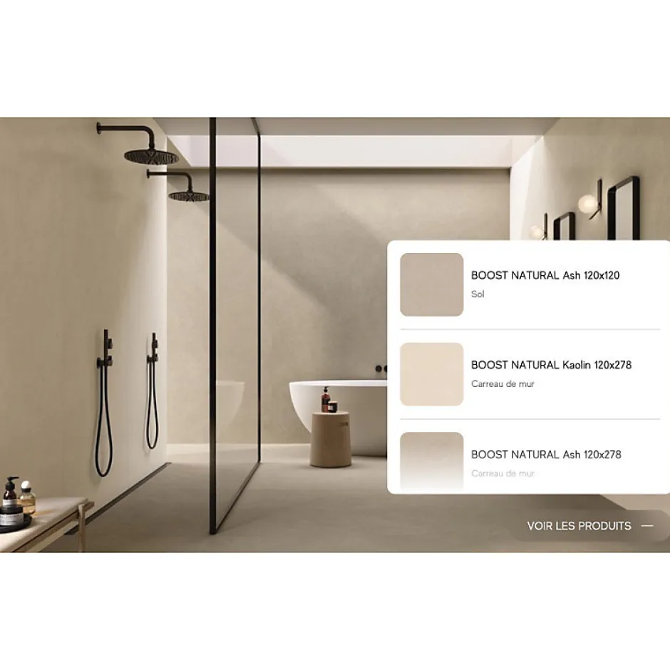 Matière: Grès Cérame coloré masse Dimensions: 80 x 80 cm Usage: Intérieur & Extérieur Destination: Sol & Mur Finition: Mate R10 A+B Rectifié: Oui Epaisseur: 9mm Nuance : V2 nuances légères Existe en: 7 coloris et 30×60 cm / 60×120 cm / 120×120 cm / 120×278 cm (demandez un devis); Découvrez Boost Natural , une collection de carrelage italien qui réinterprète la beauté des matières naturelles avec une élégance contemporaine, du sol au plafond et de l’intérieur à l’extérieur. Conçue en collaboration avec un architecte italien de renom, cette série polyvalente offre une continuité parfaite dans toute la maison : sols, murs, pièces de vie, cuisine, salle de bain et même espaces extérieurs grâce aux dalles de 20 mm pensées pour les terrasses et les jardins. Son aspect minéral subtil en fait également une alternative raffinée pour ceux qui recherchent un rendu proche du béton ciré carrelage , mais avec toute la résistance, la stabilité et la facilité d’entretien du grès cérame italien. La palette chromatique de Boost Natural s’inspire des nuances délicates de l’argile naturelle. Les variations, les textures douces et les irrégularités maîtrisées rappellent la matière brute travaillée à la main. Chaque carreau apporte équilibre, profondeur et authenticité, créant des espaces harmonieux, lumineux et apaisants. Au croisement du design moderne et de la nature, Boost Natural transforme chaque pièce en un lieu de sérénité, où l’esthétique intemporelle italienne dialogue avec la finesse des matières minérales. N’hésitez pas à nous contacter pour demander un échantillon. .