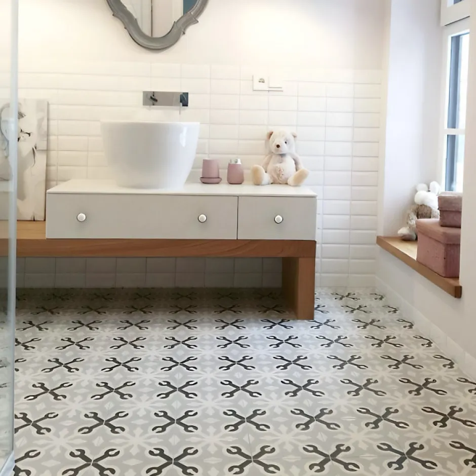 Matière: Grès pâte rouge Dimensions: 20 x 20 cm Usage: Intérieur Destination: Sol & Mur Finition: Mate Rectifié: Non Epaisseur: 8 mm Nuances: peu nuancé Existe en: 13 décors & 13 unis assortis Plongez dans l’univers du carrelage 1900, une collection au style carreaux de ciment qui allie authenticité et modernité. Réalisée en grès cérame pâte rouge, cette série offre une excellente résistance et une durabilité remarquable, idéale pour une pose au mur comme au sol, dans toutes les pièces de la maison. Avec son format carré de 20×20 cm et sa finition mate, la collection 1900 propose 13 couleurs unies et une sélection de motifs décoratifs inspirés des carreaux de ciment traditionnels, complétés par leurs bordures et angles assortis. Chaque carreau reflète un savoir-faire unique, où l’art et l’artisanat se rencontrent. Les décors évoquent l’élégance d’autrefois tout en s’intégrant parfaitement dans un intérieur contemporain. Créez de véritables tapis de patchwork personnalisés en mixant unis, motifs, bordures et angles pour un rendu à votre image. Et pour une finition parfaite, pensez aux plinthes assorties de la collection 1900, qui souligneront vos murs avec harmonie. N’hésitez pas à nous contacter pour demander un échantillon. .