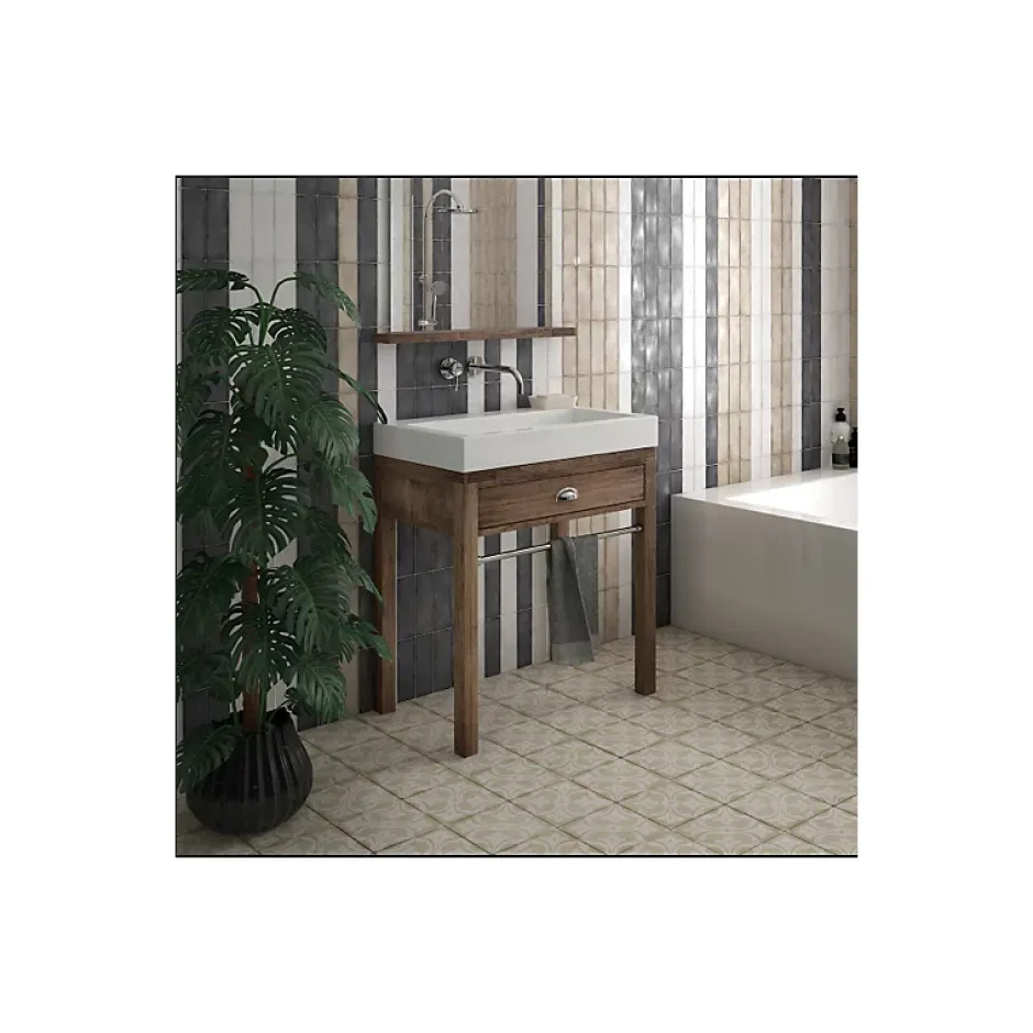 Matière: Grès cérame Dimensions: 20 x 20 cm Usage: Intérieur & Extérieur (Terrasse couverte) Destination: Sol & Mur Finition: Mate R9 – A Rectifié: Non Epaisseur: 9 mm Nuances: V2 (légères variations) Existe en: Bases 12 coloris / 8 décors noirs & blancs / 14 décors couleur . . . La série Art Nouveau, une collection en grès cérame vous permettant de parer vos sols et vos murs de motifs originaux.Cette série, facile à poser, au format de 20×20 cm, naît avec la vocation affirmée de faire prendre forme à un carreau de céramique traditionnel artisanal par l?usure et par une large palette chromatique désaturée revisitée : – 12 couleurs de carreaux de base unie, – qui sont assorties à 8 carreaux de base décorés en noir et blanc, – et à 14 carreaux de base décorés en couleur.Avec sa finition mate, cette collection est accueillante et apaisante et s?adapte à tout type de pièce et de style.* Pour les patchwork,Ces modèles sont composés par des designs différents qui sont présentés dans le même carton de façon aléatoire. . . N’hésitez pas à nous contacter pour demander un échantillon. .