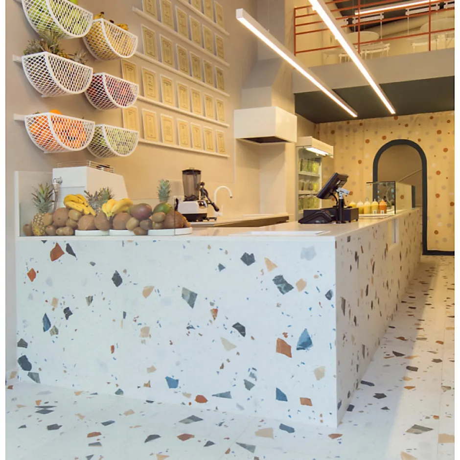 Matière: Grès cérame Dimensions: 6 0 x 60 cm Usage: Intérieur Destination: Sol & Mur Finition: Mate Rectifié: Non Epaisseur: 10 mm Nuances: légères nuances Existe en : 2 coloris ; Laissez vous séduire par notre collection originale STRACCIATELLA, notre carrelage effet terrazzo coloré qui vous propose un large choix de formats originaux en 60x60cm, 80x80cm, 60×120 et 120x120cm. Pour une parfaite finition, nous vous suggérons également d’y associer les plinthes assorties, existant pour chacun des formats de carreaux. Fabriqués en grès cérame, à la finition mate, ces carreaux de revêtement pour le sol et le mur sont résistants et durables, parfaits pour un usage quotidien, à l’intérieur comme à l’extérieur. Leur coloris multicolore, imitant les morceaux de carreaux à l’ancienne de couleurs variées, leur donne un style unique néo rétro qui mettra en valeur votre intérieur. N’hésitez pas à nous contacter pour demander un échantillon. .