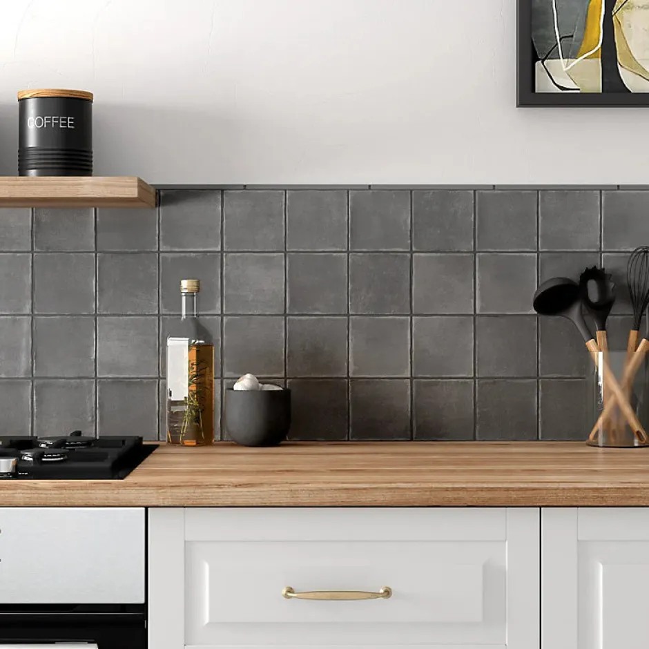 Aelle Carrelage carrelage sol / mur effet zellige bejmat noir 10x10 cm mate ARGILE DARK