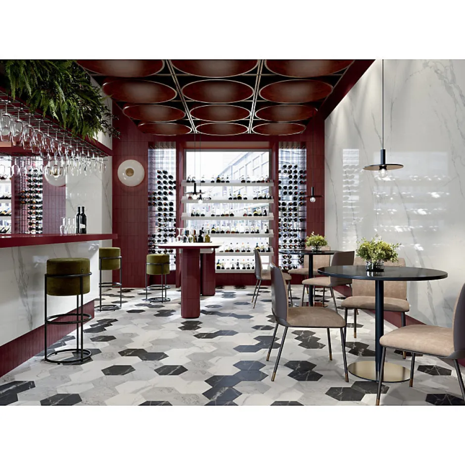 Matière: Grès cérame Dimensions: 25 x 21,6 cm Usage: Intérieur Destination: Sol & Mur Finition: Mate Rectifié: Non Épaisseur: 9 mm Nuance: V3 (variation modérée) Existe en: 4 coloris et dans les formats 60×120, 30×60, chevron 7,5x45cm disponibles sur demande ; demandez nous un devis. . . . ; ; ; ; Découvrez SCULTUREO, notre nouvelle collection disponibles dans de multiples finitions et formats originaux qui semblent comme taillés dans de véritables blocs de marbre. Cette série d’hexagonaux au format 25×21,6cm puise son inspiration des pierres précieuses et des marbres aux nuances naturelles marquées qui habilleront vos espaces d’un aspect marbre mate, au veinage unique. Scultureo évoque l’enchantement et les nombreuses facettes d’un paysage naturel qui, à travers une multiplicité d’éléments, crée des formes infinies et des dessins originaux. Les formats les plus grands allant de 120x278cm, jusqu’aux plus plus petits d’à peine 6x24cm, sont disponibles sur demande. Des formats, type chevron et des décors spécifiques sont également disponibles sur demande. N’hésitez pas à nous contacter pour demander un échantillon. .
