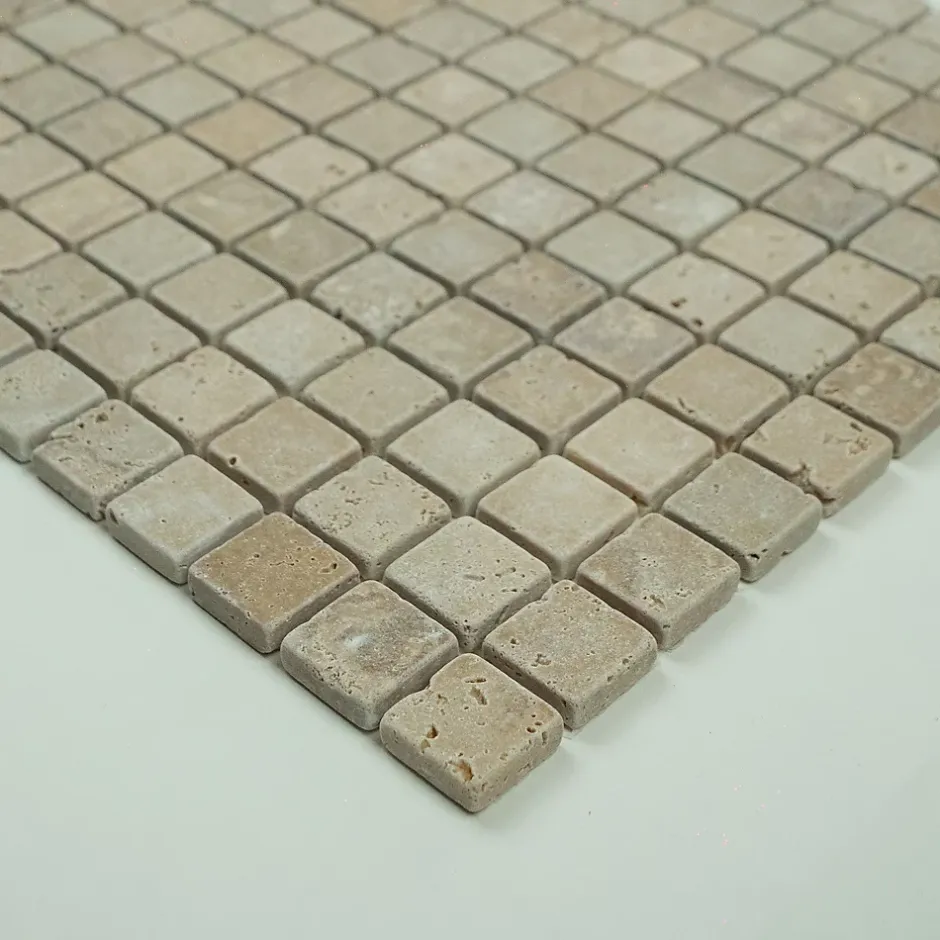 Le travertin est réputé pour sa résistance et sa durabilité, ce noble matériau renait pour décorer nos espaces de vie actuels. Grâce aux différentes caractéristiques, la mosaïque vous apportera une touche d’élégance naturelle et épurée à votre intérieur. Sa texture et ses nuances naturelles quant à elles apporteront une douceur intemporelle et indémodable à vos espaces de vie. La mosaïque est versatile, elle s’utilise en crédence, en frise ou en un mur complet et s’adapte harmonieusement aux différentes décorations intérieures des pièces de votre maison : cuisine, salle de bains, terrace…Grâce à son caractère et sa nature, le travertin reste un matériau naturel ce qui explique les éventuelles variations de couleurs, de textures, de dimensions et d’aspect final entre les produits présentés et ceux livrés. Ces variations liées à l’esthétique n’altèrent pas les caractéristiques techniques des produits. Caractéristiques : Effet : Mat vieilli Couleur : Noce Matières : Travertin Conditionnement : Plaque 30,5×30,5 Destination : Tous types de surfaces Pose : Au sol et aux murs Épaisseur : 10mm (1cm) Largeur de joint conseillé (standard) : 2mm ✅ Les atouts du travertin : Matériau naturel et durable : Vous permet d’avoir une part durable de la nature dans vos espaces de vie. Entretien facile : Le travertin ne nécessite pas de produits spécifiques pour l’entretenir. Il suffit juste de l’imperméabiliser régulièrement (conseil), et de nettoyer vos surfaces avec de l’eau et du savon doux. Une myriade de choix : Le travertin et le marbre sont des matériaux versatiles. En mosaïque ou en carrelage, les nuances et les couleurs vous donneront la liberté de décorer vos intérieurs selon vos goûts.