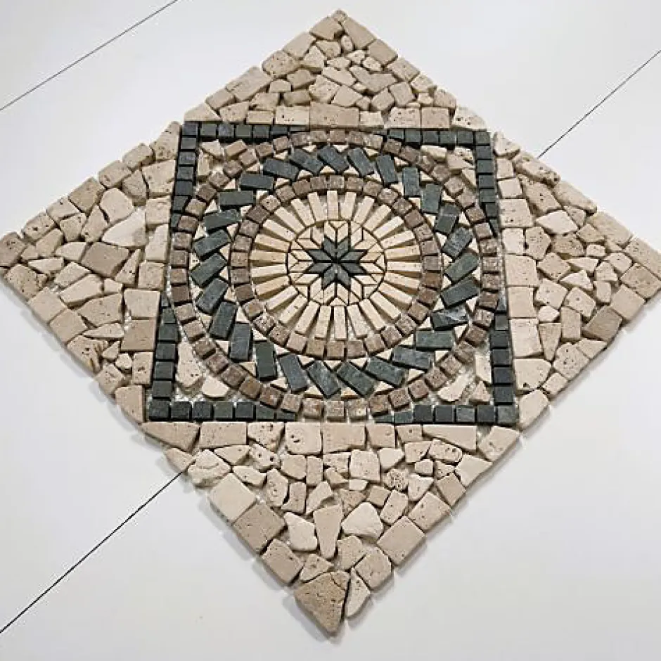 Le Travertin est réputé pour sa résistance et sa durabilité, ce noble matériau renait pour décorer nos espaces de vie actuels. Grâce aux différentes caractéristiques, la mosaïque vous apportera une touche d’élégance naturelle et épurée à votre intérieur. Sa texture et ses nuances naturelles quant à elles apporteront une douceur intemporelle et indémodable à vos espaces de vie. La mosaïque est versatile, elle s’utilise en crédence, en frise ou en un mur complet et s’adapte harmonieusement aux différentes décorations intérieures des pièces de votre maison : cuisine, salle de bains, terrace…Grâce à son caractère et sa nature, le travertin reste un matériau naturel ce qui explique les éventuelles variations de couleurs, de textures, de dimensions et d’aspect final entre les produits présentés et ceux livrés. Ces variations liées à l’esthétique n’altèrent pas les caractéristiques techniques des produits. Caractéristiques : Effet : Mat vieilli Couleur : Blanc Ivoire, VertMatières : Travertin & MarbreConditionnement : Plaque 45X45 Destination : Tous types de surfaces Pose : Au sol et aux murs Épaisseur : 10mm (1cm), 0,8mm Largeur de joint conseillé (standard) : 2mm ✅ Les atouts du travertin : Matériau naturel et durable : Vous permet d’avoir une part durable de la nature dans vos espaces de vie. Entretien facile : Le travertin ne nécessite pas de produits spécifiques pour l’entretenir. Il suffit juste de l’imperméabiliser régulièrement (conseil), et de nettoyer vos surfaces avec de l’eau et du savon doux. Une myriade de choix : Le travertin et le marbre sont des matériaux versatiles. En mosaïque ou en carrelage, les nuances et les couleurs vous donneront la liberté de décorer vos intérieurs selon vos goûts.