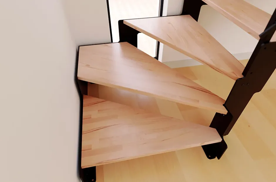 Escalier crémaillière quart tournant Costa rampe acier marche hêtre l. 2.75 m
