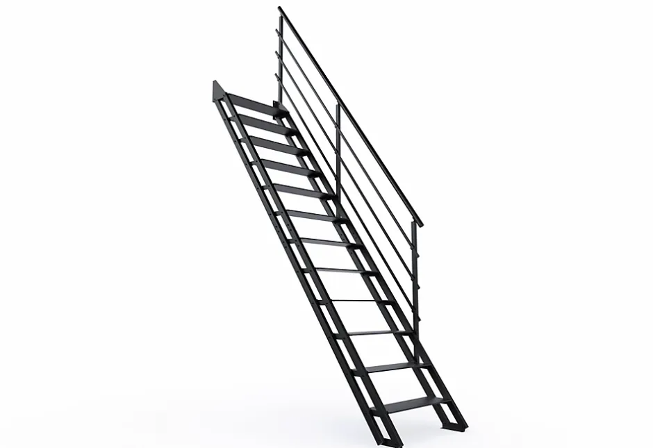 Escalier d’atelier droit Valencia 12 marches rampe en acier et marche en métal l.2.92 m