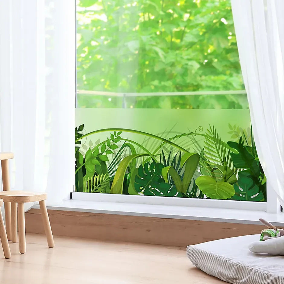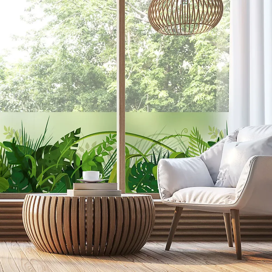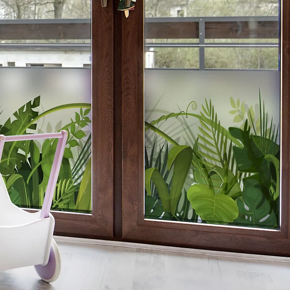 Sticker occultant pour vos fenêtres et votre salle de bainCe sticker représente les feuilles de la jungleCe sticker occultant et privatif pour fenêtre mesure H40 x L100 cmVitrophanie – Sticker dépoli translucide privatif pour vitres et fenêtres Bubble free – Pose facile sans bulle d’air Ce sticker occultant dépoli laisse passer une lumière douce et diffuse pour plus de confort dans votre intérieur Il limite la visibilité à travers les vitres et permet ainsi d’obtenir sécurité et intimité, tout en décorant votre maison Il empêche aussi les vis-à-vis de jour comme de nuitUne fois appliqué sur une fenêtre, ce sticker : – absorbera 15 % de la lumière visible – transmettra 85 % de la lumière visible Conseil pour la pose: 1/ Découper la longueur nécessaire (prendre un peu plus large) 2/ Humidifier fortement la vitre 3/ Décoller le sticker du papier support et le positionner sur la vitre humide 4/ Racler du centre vers l’extérieur pour retirer l’eau et les bulles d’air 5/ L’humidité permet de le déplacer pour une position parfaite 6/ Laisser sécher 7/ Couper au cutter les bandes qui dépassent de la vitre Durée de vie: 5-8 ans Où coller cet autocollant déco occultant ? Les idées Déco Ambiance Sticker: Ce sticker occultant trouvera facilement sa place sur les baies vitrées, les fenêtres de salle de bain, cuisine, toilette, chambre, et autres fenêtres de la maison, les rambardes vitrées extérieures et intérieures, et même sur les portes de douche Ce sticker occultant peut être aussi utiliser en milieu professionnel: pour les vitres de bureaux, salle d’attente, vitrines de magasin, ou toute autre vitre extérieureL’adhésif occultant fenêtre vous permet également de préserver votre intimité lorsque vous êtes à l’intérieur de votre maisonLe sticker occultant vitre est idéal posé sur une baie vitrée pour masquer le vis à vis dans votre bureau Les stickers occultants fenêtres s’intègrent aisément dans tous les intérieursCe sti