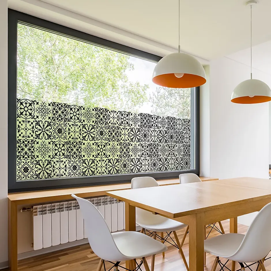 Taille du produit : 40 X 200 cm Sticker occultant pour vos fenêtres et votre salle de bainCe sticker représente des carrelages azulejosCe sticker occultant et privatif pour fenêtre mesure H40 x L200 cmVitrophanie – Sticker dépoli translucide privatif pour vitres et fenêtres Bubble free – Pose facile sans bulle d’air Ce sticker occultant dépoli laisse passer une lumière douce et diffuse pour plus de confort dans votre intérieur Il limite la visibilité à travers les vitres et permet ainsi d’obtenir sécurité et intimité, tout en décorant votre maison Il empêche aussi les vis-à-vis de jour comme de nuitUne fois appliqué sur une fenêtre, ce sticker : – absorbera 15 % de la lumière visible – transmettra 85 % de la lumière visible Conseil pour la pose: 1/ Découper la longueur nécessaire (prendre un peu plus large) 2/ Humidifier fortement la vitre 3/ Décoller le sticker du papier support et le positionner sur la vitre humide 4/ Racler du centre vers l’extérieur pour retirer l’eau et les bulles d’air 5/ L’humidité permet de le déplacer pour une position parfaite 6/ Laisser sécher 7/ Couper au cutter les bandes qui dépassent de la vitre Durée de vie: 5-8 ans Où coller cet autocollant déco occultant ? Les idées Déco Ambiance Sticker: Ce sticker occultant trouvera facilement sa place sur les baies vitrées, les fenêtres de salle de bain, cuisine, toilette, chambre, et autres fenêtres de la maison, les rambardes vitrées extérieures et intérieures, et même sur les portes de douche Ce sticker occultant peut être aussi utiliser en milieu professionnel: pour les vitres de bureaux, salle d’attente, vitrines de magasin, ou toute autre vitre extérieureL’adhésif occultant fenêtre vous permet également de préserver votre intimité lorsque vous êtes à l’intérieur de votre maisonLe sticker occultant vitre est idéal posé sur une baie vitrée pour masquer le vis à vis dans votre bureau Les stickers occultants