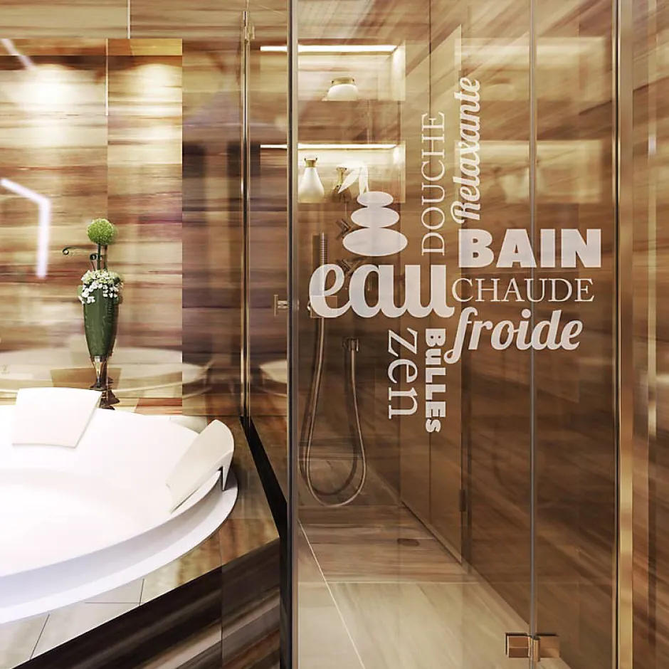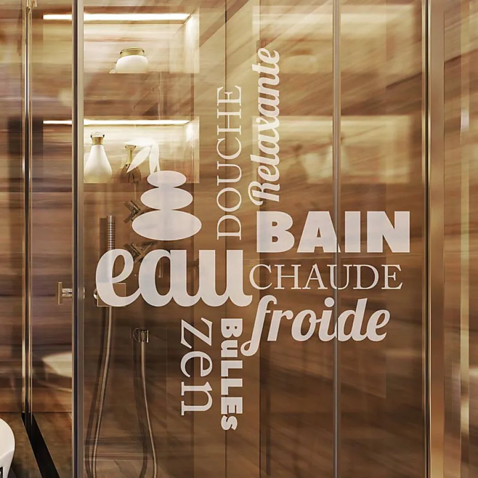 Taille du produit : 100 x 80 cm Des stickers portes de douche pour votre déco Avec les stickers muraux pour salle de bain et ce Sticker porte de douche Douche zen 100 x 80 cm, vous donnera des idées de décoration Où coller cet autocollant déco ? Cet autocollant déco porte de douche sera parfait votre salle de bain C’est le sticker idéal pour décorer vos meubles de salle de bain, les miroirs, le carrelage des murs ou tout autour du bain ou de la douche Grâce à ce petit effort de décoration murale, votre salle de bain sera bien plus design et attrayante Matériau: Vinyle sablé satin Crystal (spécial pour porte de douche et vitre) Les conseils pour bien poser votre Sticker porte de douche 1 Humidifier la vitre2 Décoller le papier support3 Placer le sticker sur la vitre (l’humidité permet de faire des ajustements)4 Laisser sécher5 Retirer le film de transfert Voilà votre porte de douche donne de l’originalité à votre salle de bain