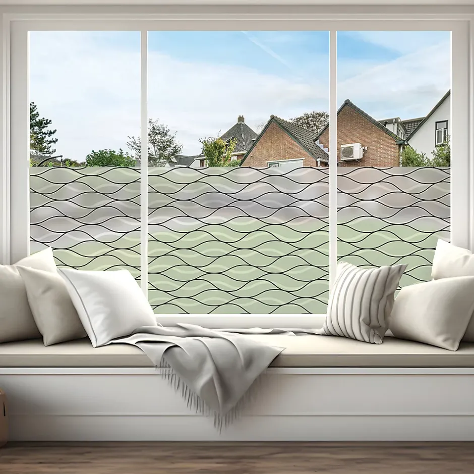 Taille du produit : 40 X 200 cm Sticker occultant pour vos fenêtres et votre salle de bainCe sticker représente les vagues modernesCe sticker occultant et privatif pour fenêtre mesure H40 x L200 cmVitrophanie – Sticker dépoli translucide privatif pour vitres et fenêtres Bubble free – Pose facile sans bulle d’air Ce sticker occultant dépoli laisse passer une lumière douce et diffuse pour plus de confort dans votre intérieur Il limite la visibilité à travers les vitres et permet ainsi d’obtenir sécurité et intimité, tout en décorant votre maison Il empêche aussi les vis-à-vis de jour comme de nuitUne fois appliqué sur une fenêtre, ce sticker : – absorbera 15 % de la lumière visible – transmettra 85 % de la lumière visible Conseil pour la pose: 1/ Découper la longueur nécessaire (prendre un peu plus large) 2/ Humidifier fortement la vitre 3/ Décoller le sticker du papier support et le positionner sur la vitre humide 4/ Racler du centre vers l’extérieur pour retirer l’eau et les bulles d’air 5/ L’humidité permet de le déplacer pour une position parfaite 6/ Laisser sécher 7/ Couper au cutter les bandes qui dépassent de la vitre Durée de vie: 5-8 ans Où coller cet autocollant déco occultant ? Les idées Déco Ambiance Sticker: Ce sticker occultant trouvera facilement sa place sur les baies vitrées, les fenêtres de salle de bain, cuisine, toilette, chambre, et autres fenêtres de la maison, les rambardes vitrées extérieures et intérieures, et même sur les portes de douche Ce sticker occultant peut être aussi utiliser en milieu professionnel: pour les vitres de bureaux, salle d’attente, vitrines de magasin, ou toute autre vitre extérieureL’adhésif occultant fenêtre vous permet également de préserver votre intimité lorsque vous êtes à l’intérieur de votre maisonLe sticker occultant vitre est idéal posé sur une baie vitrée pour masquer le vis à vis dans votre bureau Les stickers occultants fenê