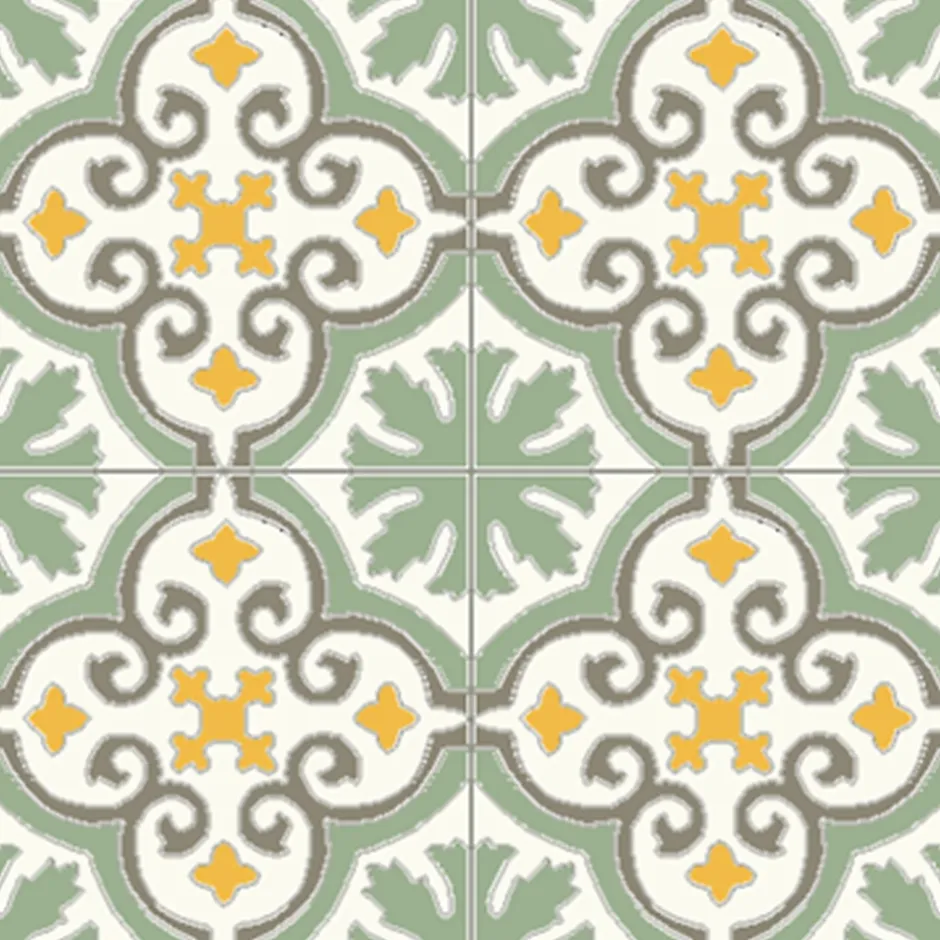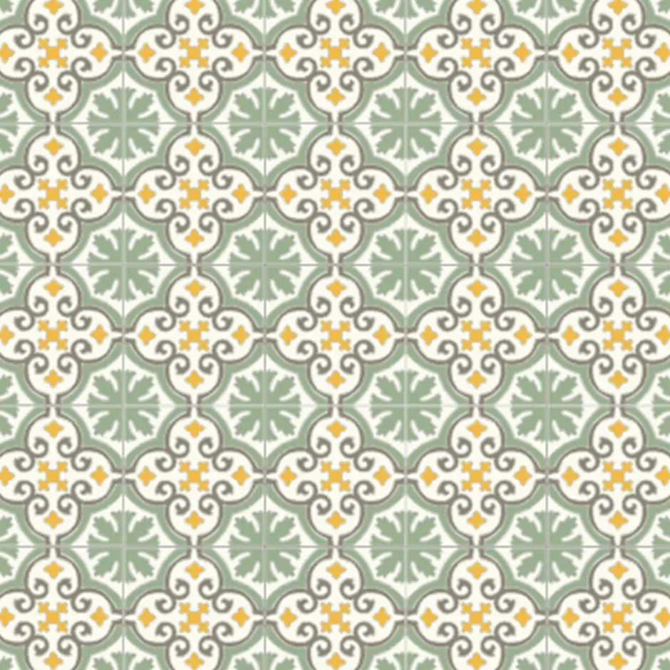 Carreaux de ciment de fabrication artisanale ; chaque carreau est fabriqué individuellement selon le prcédé traditionnel.Dim: 20 x 20 cm épais. 16 mm ; décor dans la masse épais. 5 mm.Couleurs : Blanc 48 / Gris 42 / Jaune 116 / Vert U20.Carreaux destinés pour revêtements de sols intérieurs : Cuisines, salles de bains, entrées, couloirs, salons, chambres, vérandas etc…Les carreaux de ciment sont naturellement poreux, il est conseillé de les imperméabiliser afin de les préserver de toutes taches et salissures.Conditionnement : carton de 14 pièces soit 0,56 m².Sublimez votre intérieur avec ce magnifique carreau de ciment à motif floral et géométrique, inspiré des designs traditionnels du début du XXe siècle. Ce modèle dénommé élégance, apporte une touche d’authenticité et de charme intemporel à n’importe quelle pièce.Le dessin crée un motif en étoile complexe lorsqu’il est posé, formant un quadrilobe élégant au centre de chaque carreau et des motifs de type feuilles ou rosaces aux croisements.Ce carreau se distingue par une palette de couleurs douces et harmonieuses :Une teinte apaisante avec le vert amande dominant pour les motifs de rosaces et les arcs extérieurs. Des touches de jaune ensoleillées qui animent le centre du motif et captent la lumière. Un gris discret qui dessine les volutes du motif floral, apportant finesse et contraste, et une base neutre et lumineuse avec le blanc qui met en valeur l’ensemble du dessin.Idéal pour :Salles de bains : Pour un look vintage chic.Cuisines : En crédence ou au sol, pour une ambiance « Maison de Famille ».Entrées/Couloirs : Pour un accueil chaleureux et remarquable.Terrasses couvertes : Apporte un cachet méditerranéen.