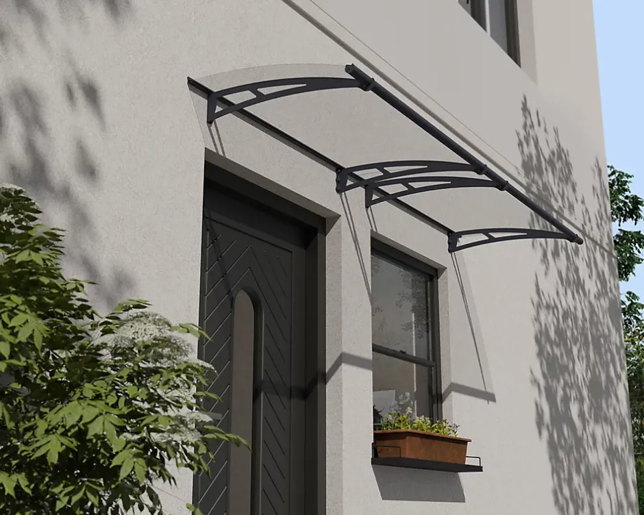 - Avec son design intemporel, l’auvent de porte Aquila ultra-résistant saura parfaitement s’adapter à votre maison.
