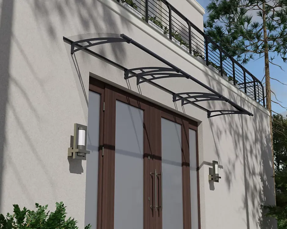 - Avec son design intemporel, l’auvent de porte Aquila ultra-résistant saura parfaitement s’adapter à votre maison.
