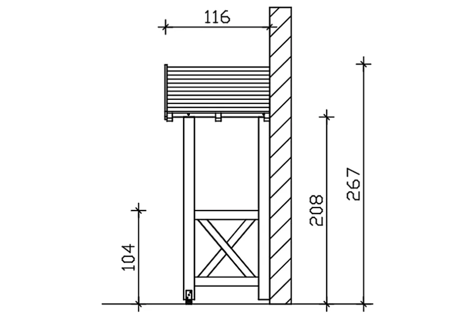 Auvent de porte d’entrée SKAN HOLZ « Siegen 4 »• Dimensions extérieures : 247 x 115,5 cm• Structure massive en bois massif abouté d’excellente qualité (BMA épicéa)• Sans peinture couleur• Montants 12 x 12 cm• Pannes 12 x 12 cm• Chevrons 6 x 12 cm• Véritables assemblages à tenons et mortaises• Chevrons entaillés• Support à visser compris• voligeage de 20 mm• Bardeaux disponibles en accessoires• Livraison sans matériel de fixation muraleStructureLa structure est réalisée en bois massif de construction (KVH). On entend par KVH du bois d’épicéa massif collé sans fin et séché mécaniquement. Chaque section de bois est séchée, scannée pour identifier les défauts, triée et collée de manière résistante aux intempéries par dents collées. Ses fissures, ses branches et de petits nœuds reflètent le caractère des matériaux utilisés.Traitement coloréCe kit ne bénéficie d’aucun traitement coloré. Les bois destinés à une utilisation en extérieur sont constamment soumis aux conditions météorologiques, ainsi qu’aux risques d’infestations de champignons ou d’insectes. Il faut donc régulièrement y appliquer une couche protectrice, la toute première avant le montage. Utilisez avant tout un primaire de protection du bois contre les infestations de champignons et d’insectes. Appliquez ensuite une couche intermédiaire et finale de lasure ou de peinture de qualité pour préserver le bois de la coloration et des dégâts dûs aux rayons UV. Prévoyez des intervalles d’environ 4 à 5 ans entre les applications, mais au plus tard avant l’apparition de dégâts visibles. Veuillez suivre les instructions de traitement du fabricant de la lasure.