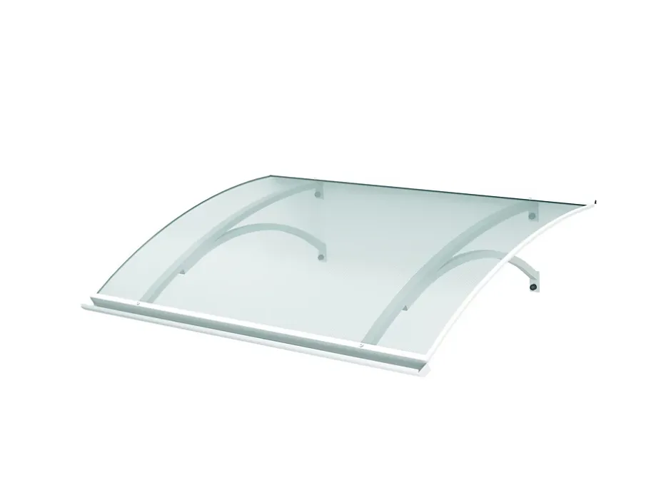 Auvent de type marquise équipé d’une gouttière frontale assurant l’évacuation contrôlée des eaux pluviales. Structure en aluminium thermolaqué, offrant une haute résistance à la corrosion. Panneau en polycarbonate alvéolaire avec traitement anti-UV garantissant une protection durable contre le rayonnement solaire