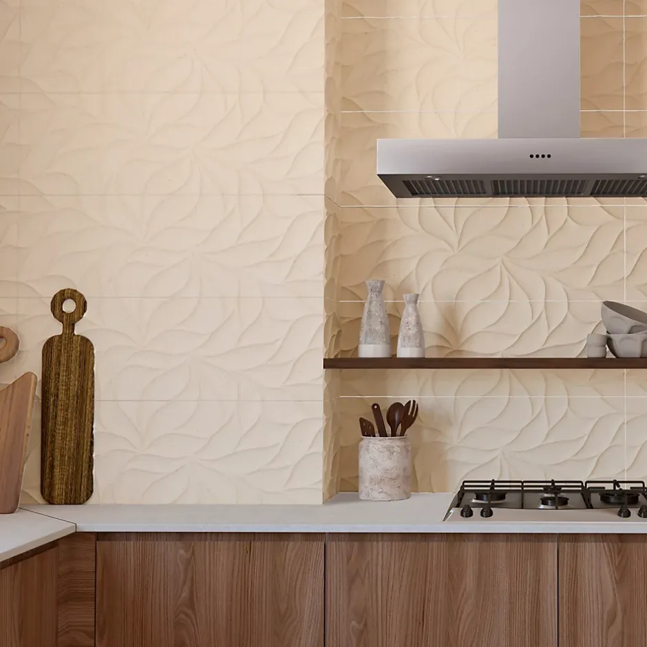 Offrez à vos intérieurs une ambiance douce et raffinée avec la faïence murale Avenue Baldocer, au décor feuille délicatement gravé en relief. Son effet pierre subtil, sa teinte beige chaleureuse et sa finition mate en font un revêtement mural idéal pour créer une atmosphère apaisante.