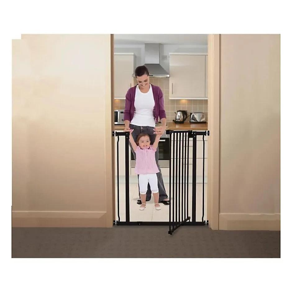 La barrière de sécurité Liberty Xtra-Haute de Dreambaby aide à protéger les enfants des chutes et autres accidents dans la maison. La barrière reste ouverte dans les deux sens et est facile à installer. La barrière peut s’adapter à des ouvertures de 75 à 81 cm et s’étendre jusqu’à 2,81 m avec extensions en option.