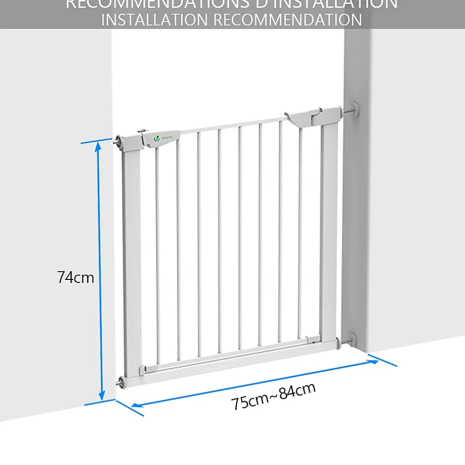 FACILE À UTILISER ET FERMETURE MAGNETIQUE Cette Barrière de sécurité est conforme aux normes de sécurité européennes EN 1930 : 2011. Le concept de fermeture magnétique vous permet de manipuler à une seule main. C’est pratique surtout lorsque vous tenez des affaires dans vos bras. Cela ne prend que 5 minutes et vous pouvez facilement installer cette barrière sans percer dans vos murs. La barrière dispose d’un double mécanisme de verrouillage manuel, la porte ne peut pas etre ouverte accidentellement.FACILE À INSTALLER – Cette barrière de sécurité s’installe facilement avec une fixation par pression sans aucun perçage et se retire rapidement avec un simple système de déclenchement.FERMETURE MAGNETIQUE – Barrière à fermeture magnétique qui se bloque en toute sécurité une fois en place. Tirer et lever la poignée pour une ouverture facile d’une seule main par un adulte.SÛRE – Construction robuste en acier et section de passage extra-large. La barrière de sécurité ne peut pas être ouverte accidentellement grâce à son mécanisme de verrouillage fiable.NE RETIREZ PAS L’ATTACHE AVANT QUE LA BARRIÈRE NE SOIT PAS COMPLÈTEMENT INSTALLÉE.Veuillez ne pas mettre cette barrière en haut de l’escalier mais seulement en bas d’escalier.AVERTISSEMENT – Lisez les instructions avant l’installation car une installation incorrecte peut être dangereuse AVERTISSEMENT – Cette barrière de sécurité ne doit pas être installée sur les fenêtres AVERTISSEMENT – Ne jamais utiliser sans les ventouses muralesCARACTÉRISTIQUES : Hauteur: 74 cm Poids du produit: 5.5 kg Matériau: Métal; Plastique Colis inclus: 1 barrière de sécurité, 4 points de serrage, 1 notice