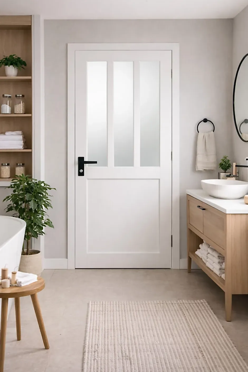 Bloc-porte Atelier Blanc Vitrage depoli securiteIntimite, luminosite douce et confort interieurLe bloc-porte Atelier Blanc vitre depoli est une solution elegante pour structurer vos espaces interieurs tout en preservant l’intimite. Realise en MDF enrobe blanc et fabrique en France, il s’integre parfaitement aux interieurs contemporains grace a son design sobre et lumineux.Avec une dimension cotes tableau de H 204 x L 73 cm et une dimension hors tout de 211,6 x 81,5 cm, ce bloc-porte est dote d’un ouvrant de 40 mm d’epaisseur, garantissant robustesse et stabilite.Il est equipe d’un vitrage depoli de securite de 4 mm, permettant une diffusion douce de la lumiere tout en assurant discretion et confort. L’ensemble est monte sur une huisserie ajustable de 72 a 100 mm, offrant une adaptation optimale aux differentes epaisseurs de murs.Livre pret a poser, le bloc-porte comprend une serrure a cle et une gache posees, ainsi qu’un joint d’isolation isophonique pour un meilleur confort acoustique.Sens d’ouverture : poussant gauchePoignee inclusConçu exclusivement pour un usage interieur, ce bloc-porte doit imperativement etre installe dans un espace chauffe et isole, afin de garantir sa durabilite et ses performances.