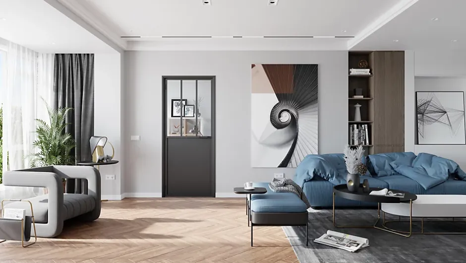 Bloc Porte Atelier H. 204 X 93 X 3 cm cadre en aluminium noir et verre transparent Poussant Droit