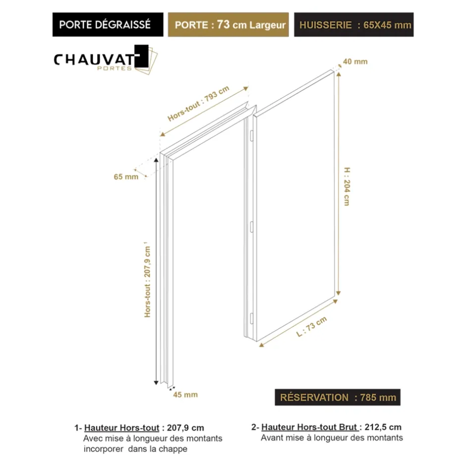 Bloc-porte Camargue 2 panneaux blanc H.204 x l.73 cm, poussant gauche