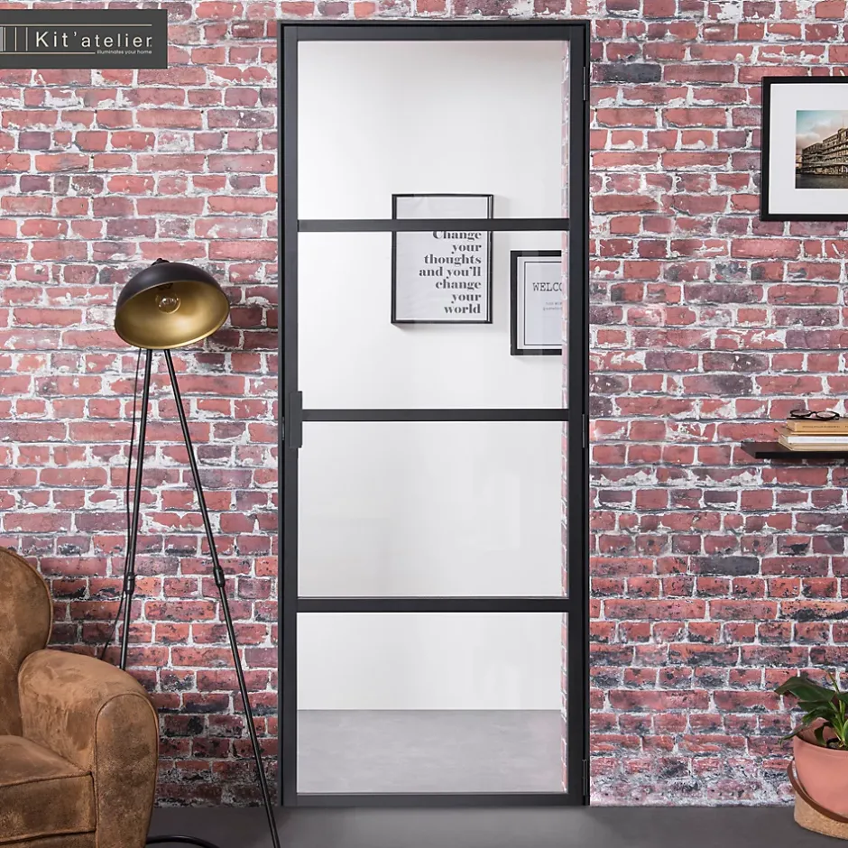 Bloc-porte Loft 4 carreaux vitrés transparents, poussant gauche, coloris noir mat H.213 x l.83cm