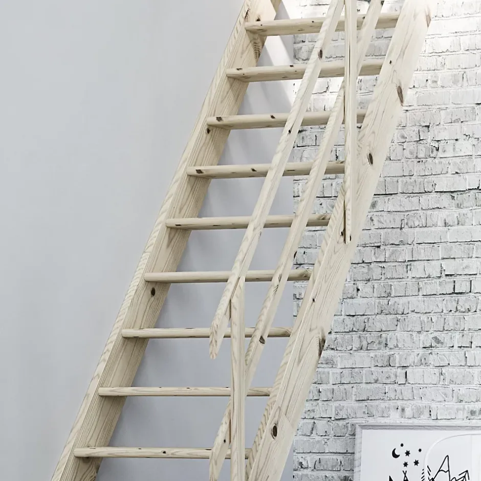 - *Très robuste – supporte une charge impressionnante de 300 kg (47,2 stones)*Sa construction en épicéa lui confère une solidité et une durabilité supérieures aux modèles en pin de moindre qualité, offrant une sensation de robustesse à l’usage et une meilleure résistance à l’usure, pour une apparence impeccable pendant de nombreuses années.*L’escalier est livré directement chez vous, en un seul colis, pour une commande simple et sans tracas du début à la fin.*Ses marches extra-profondes (190 mm) et larges (686 mm) garantissent une montée facile et confortable, comme un escalier classique.*Construit en bois de 32 mm d’épaisseur (contre 27 mm pour d’autres modèles) pour une stabilité parfaite.*Son inclinaison de 53° rend l’escalier très facile et confortable à monter. Utilisation*Fourni avec un kit de rampe complet (main courante et appui-genoux) – la plupart des escaliers ne comportent que des mains courantes – pour une sécurité accrue.*Les marches sont encastrées et vissées aux limons (côtés) pour une solidité maximale – contrairement à d’autres escaliers simplement vissés qui peuvent se tordre, grincer et se desserrer.*L’escalier présente une finition élégante, mais peut également être peint ou verni pour s’harmoniser avec votre décoration intérieure.*Facile à réduire en largeur si nécessaire – chaque marche peut être coupée à la largeur souhaitée.*Hauteur maximale entre le sol et l’étage : 3,11 m – ajustable selon vos besoins.*Toutes les fixations sont fournies.*Kit de contremarches disponible en option.*Instructions illustrées et faciles à suivre fournies.*GARANTIE À VIE SANS DISCUSSION !