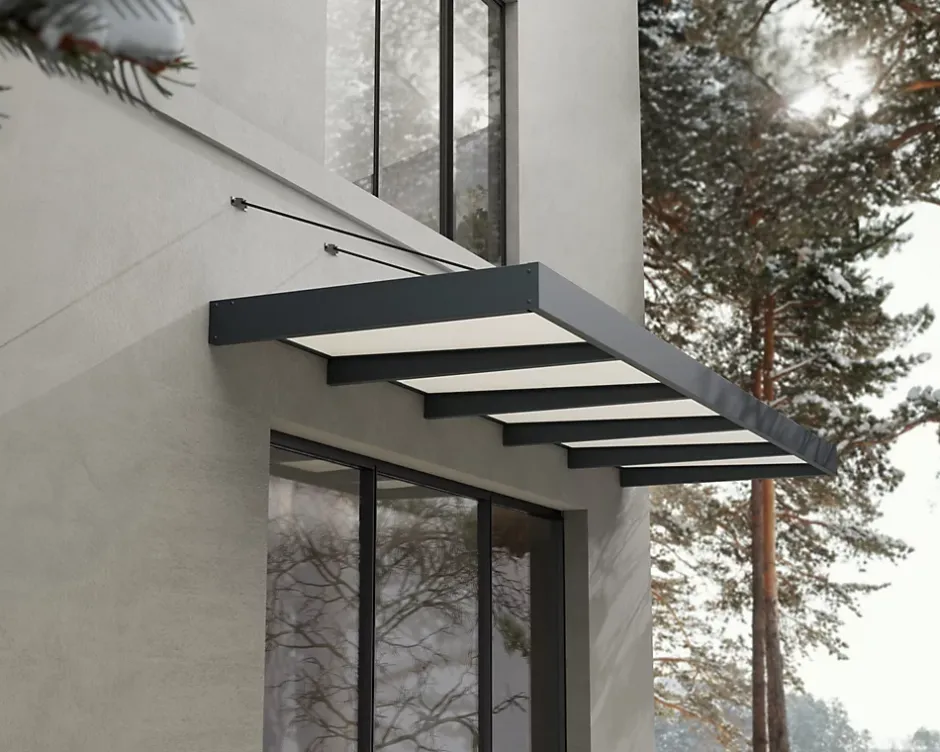 Auvent Sophia XL 140 x 471 cm Grise – Translucide en Acrylique et aluminium