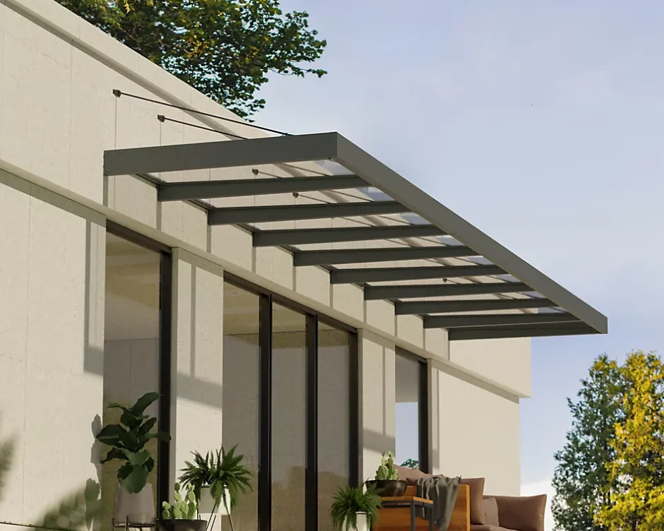 Auvent Sophia XL 140 x 845 cm Grise – Transparent en Acrylique et aluminium