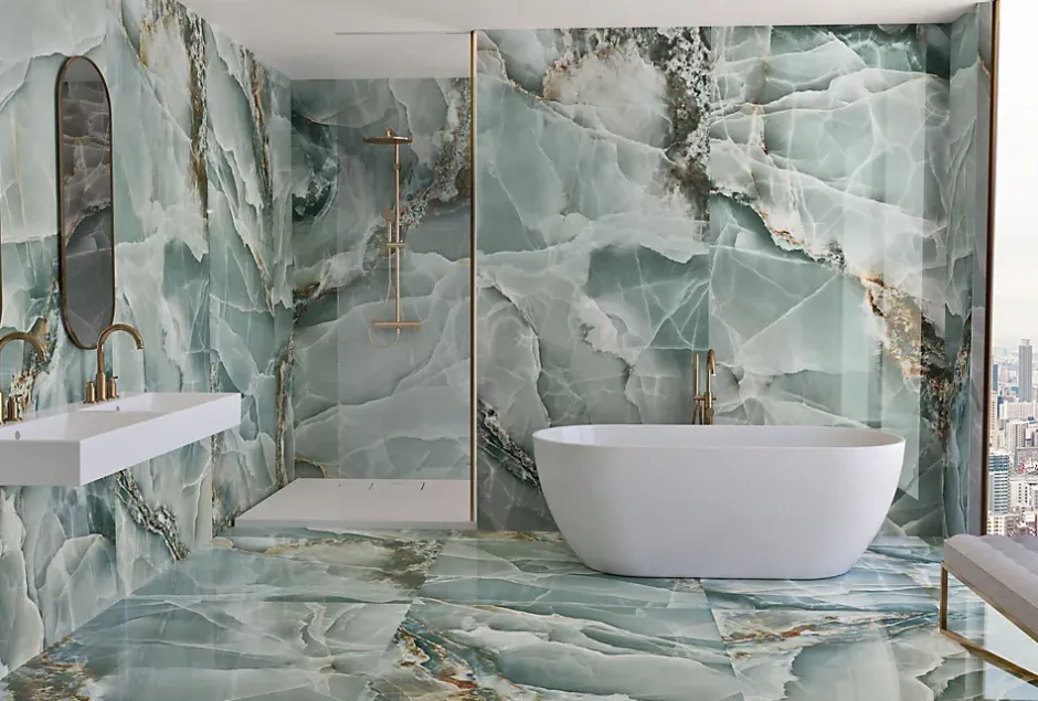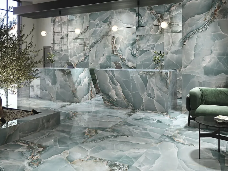 Laissez-vous envoûter par le carrelage effet marbre turquoise poli de 60 x 120 cm. Son imitation parfaite du marbre naturel apporte une touche d’élégance à votre intérieur. sans compromettre votre budget. Parfait pour les grandes surfaces. il est idéal pour sublimer votre salle de bains ou votre salon avec son allure majestueuse.