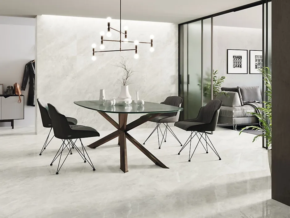 Les adeptes de l’élégance seront envoûtés par ce carrelage LUMOS de teinte grise. Doté d’une texture mate qui imite parfaitement le marbre gris. il met en valeur élégance et originalité. ce qui en fait un choix parfait pour les vastes espaces.