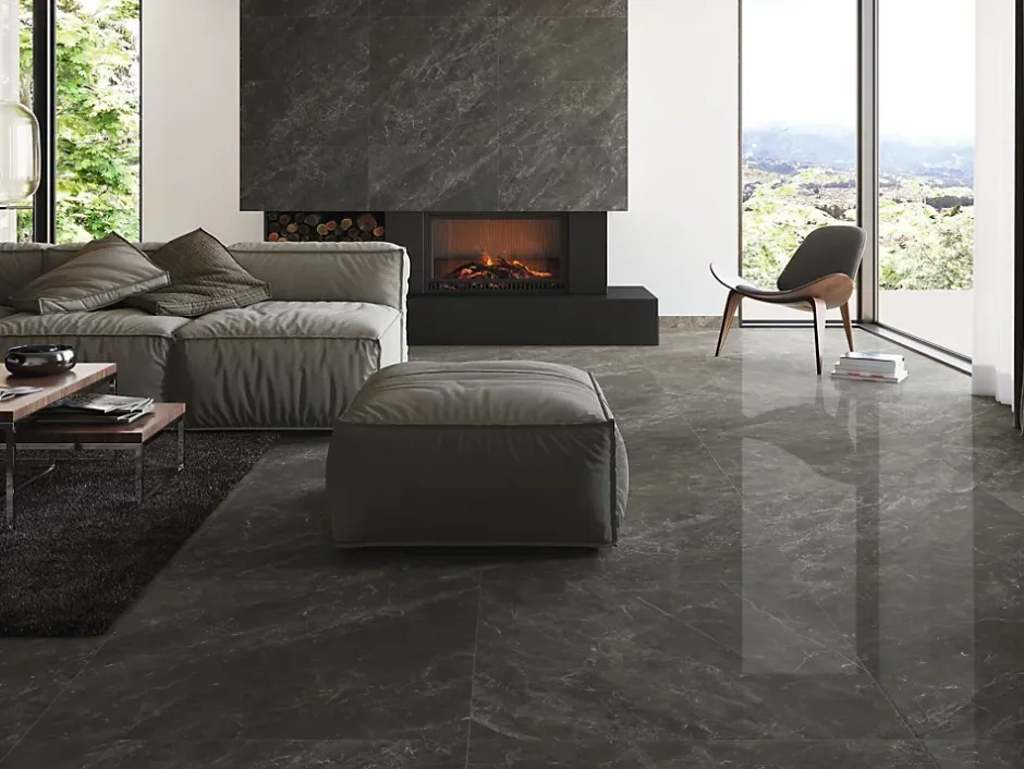 Ce carrelage noir. qui imite à la perfection le marbre. insufflera une touche d’élégance et de distinction à vos vastes espaces. Sa finition polie confère une allure majestueuse. incarnant le charme intemporel du marbre noir pour habiller vos sols et murs.