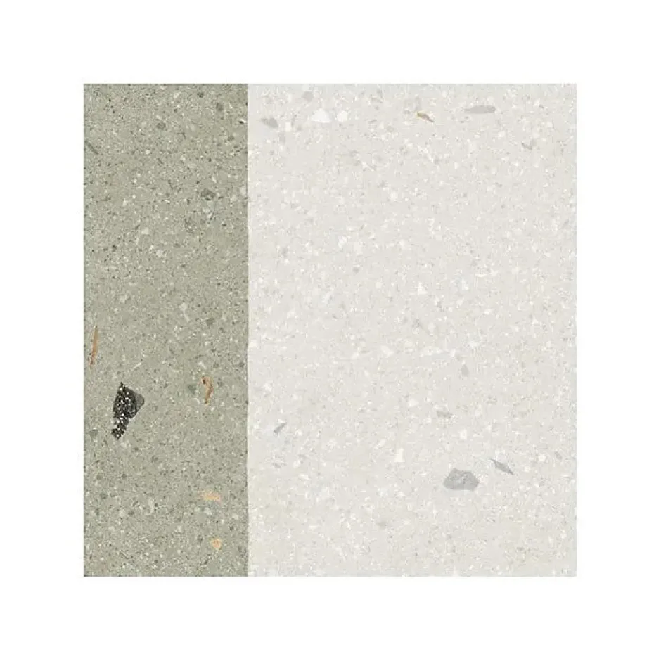 Si vous aimez la couleur verte. vous allez craquer pour ce carrelage aspect terrazzo Aroma Vert Grain 20×20 cm. Il est conçu pour résister à l’humidité et aux taches. ce qui en fait un choix avisé pour les pièces à haut niveau de salissure. Sa taille pratique facilite la pose et permet des agencements créatifs.