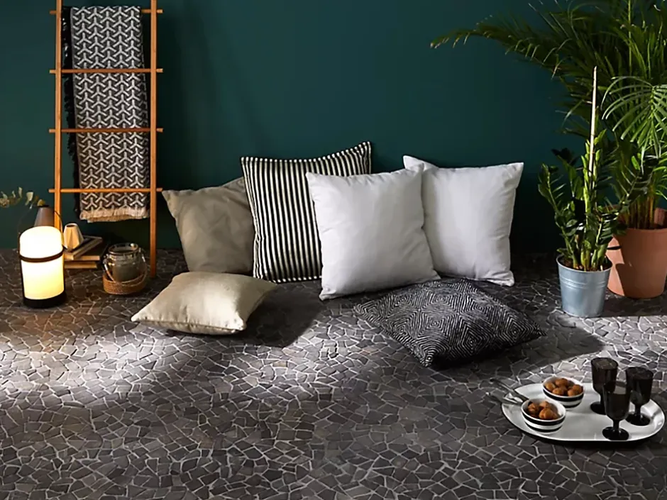 Boite de 11 plaques de mosaïque en marbre naturel à poser au mur ou au sol.À utiliser en tant que listel ou seule pour mettre en valeur un mur.Fragments de marbre naturel taillés à la main.Instructions d’entretien :N’utilisez pas de chiffons abrasifs ni de nettoyants corrosifs.Toujours respecter les instructions du fabricant concernant le mortier-colle et les joints de carrelage.Dimensions :- Boîte de 11 pièces: 33 x 33 x 14,5 centimètres- Trame : 30×30 cm- Epaisseur : entre 0,9 et 1 cm- 1 boîte: 1 m2Matériaux : Marbre naturelCouleur : grisPoids : 24 kg