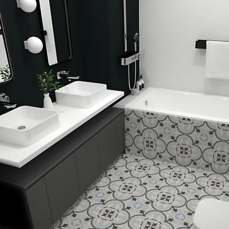 Ces carreaux effet ciment rappellent le charme des sols anciens avec leurs motifs géométriques et leurs teintes douces. Ils s’intègrent facilement dans une cuisine, une entrée ou une salle de bain, et se marient aussi bien à des matériaux bruts qu’à des éléments plus modernes.Pour votre projet, pensez à prévoir environ 10 % de carreaux supplémentaires afin de compenser les coupes et ajustements lors de la pose.