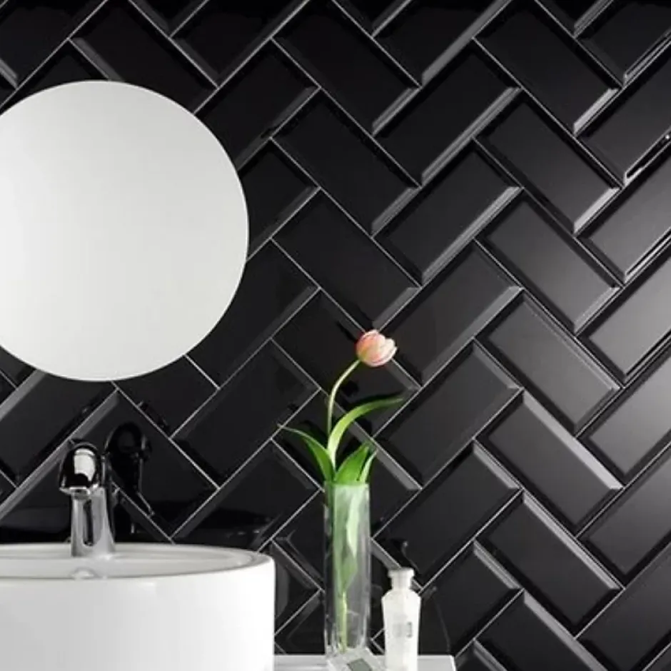 Carrelage mur métro parisien relief uni noir mate 7,5×15 cm METRO BLACK-Eiffel art construction Hot