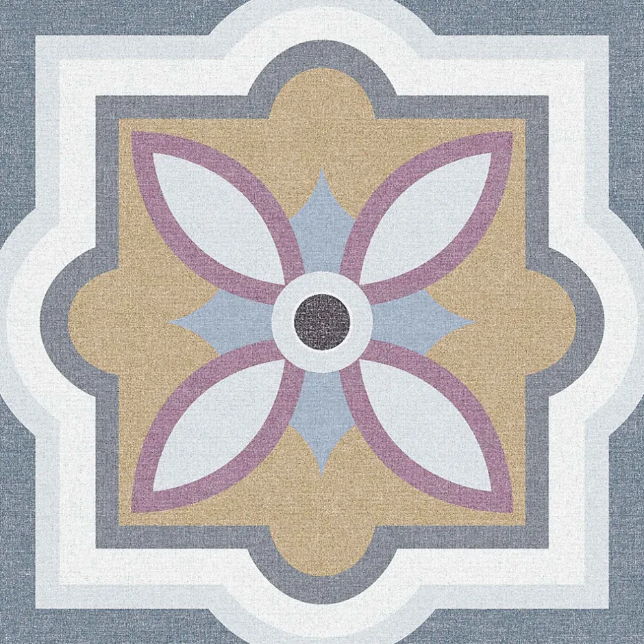Combinaison joyeuse et colorée type patchwork de designs classiques de carrelage en porcelaine inspiré par les motifs hydrauliques. Peut être posé dans tous les espaces résidentiels et les zones humides grâce à sa pâte porcelanique avec moins de 0,5% d’absorption d’eau et à son émail vitrifié qui le rend imperméable aux taches et à l’humidité