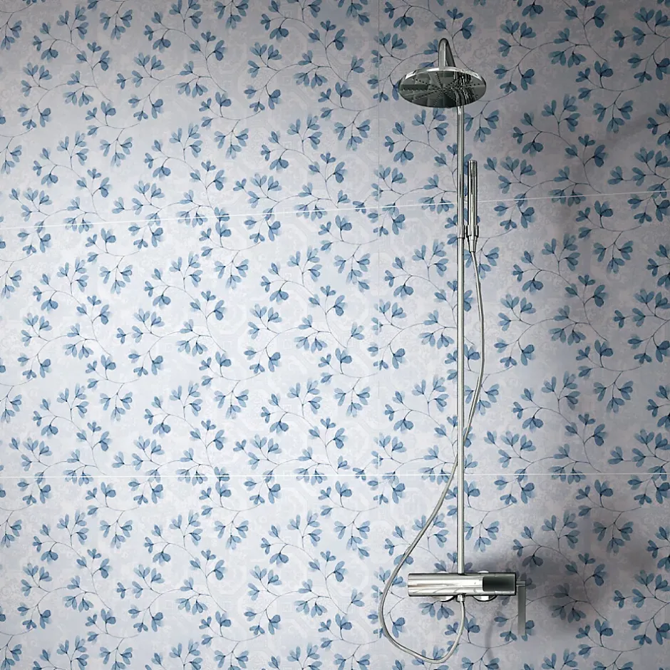 Carrelage sol et mur bleu Floral 60 x 120 cm