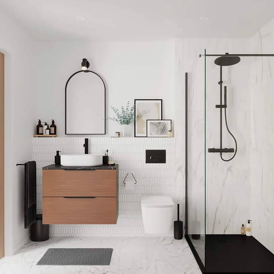 Apportez une touche de luxe avec le carrelage intérieur sol et mur GoodHome Aruma blanc/gris brillant (608mm x 608mm). Avec un effet marbre lisse, ces carreaux polyvalents conviennent aux murs et sols, créant une esthétique moderne et homogène. Les bords non rectifiés nécessitent un joint de 4 mm ou plus et offrent une résistance au glissement, parfait pour des espaces sécurisés et élégants. Compatibles avec le chauffage au sol, ils allient style et confort pour salles de bain, cuisines et salons.