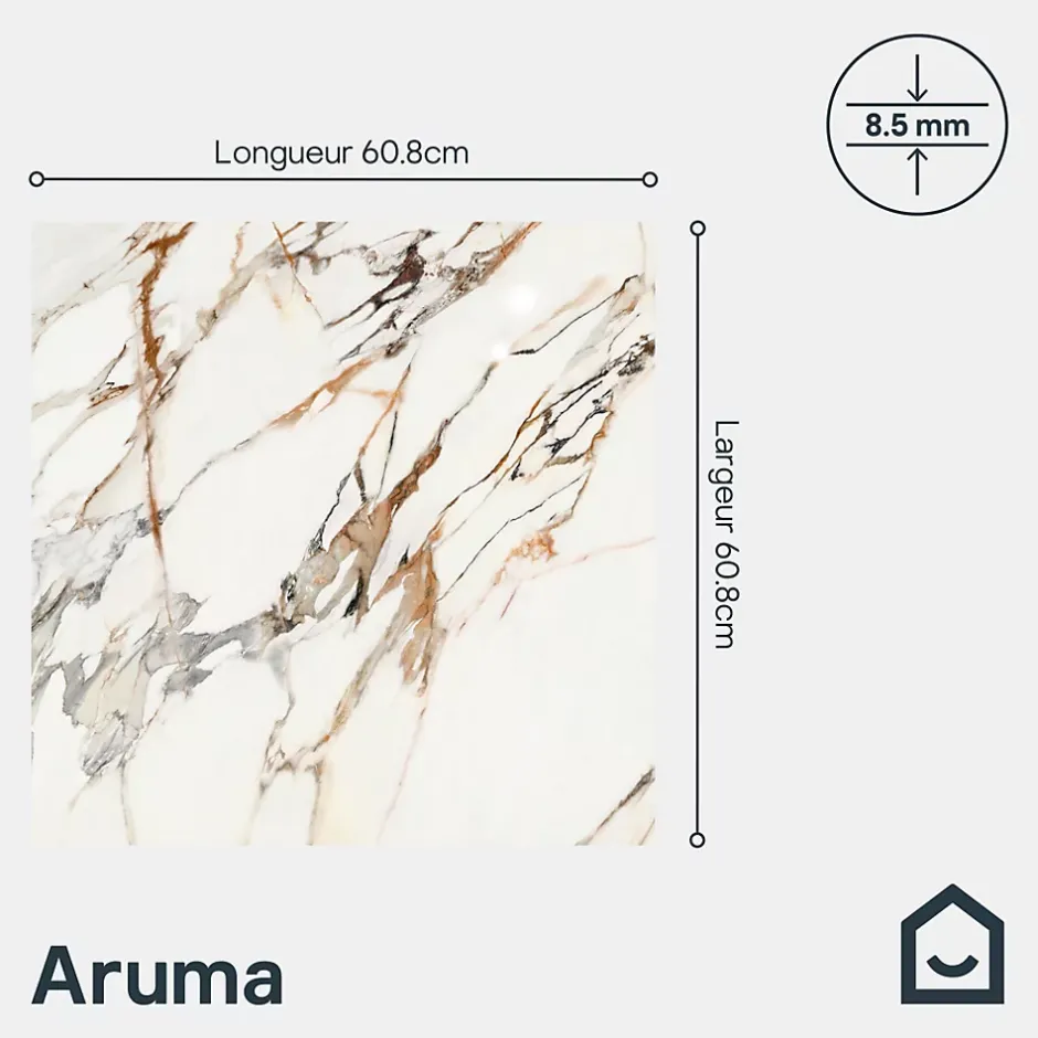 Le carrelage intérieur GoodHome Aruma brillant blanc et rouge pour murs et sols intérieurs (608 mm x 608 mm) combine luxe et élégance intemporelle. Avec finition brillante effet marbre, ces carreaux émaillés non rectifiés sont compatibles avec le chauffage au sol et offrent une résistance anti-dérapante. Adaptés aux zones sèches et humides, ils conviennent aux murs et sols, créant un rendu harmonieux et raffiné. En les associant aux plinthes assorties, vous obtenez un intérieur élégant et cohérent, alliant style, sécurité et facilité d’entretien durable.