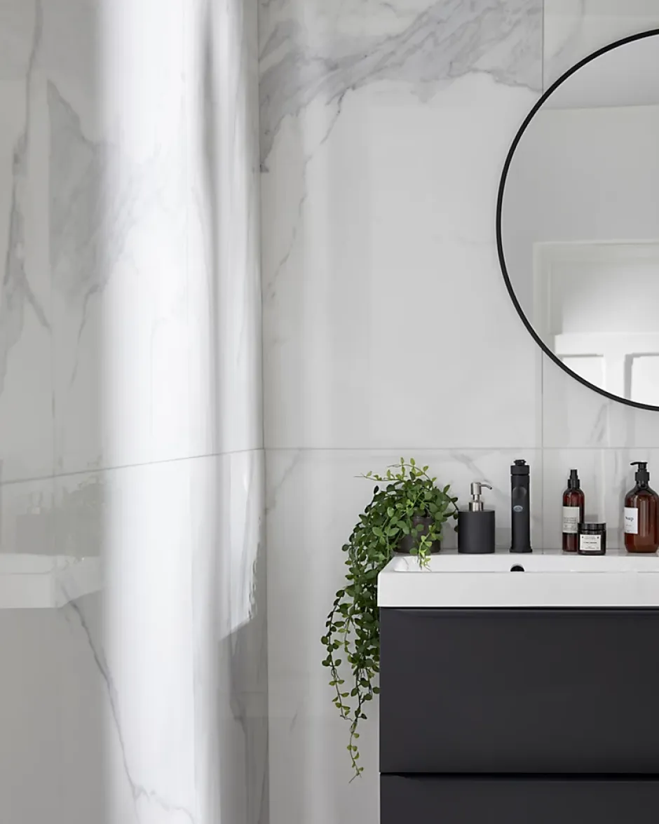 - Son effet marbre poli apporte une touche d’élégance et de luminosité à votre intérieur.