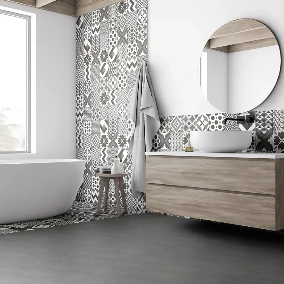 - Effet carreaux de ciment pour un style vintage et élégant.