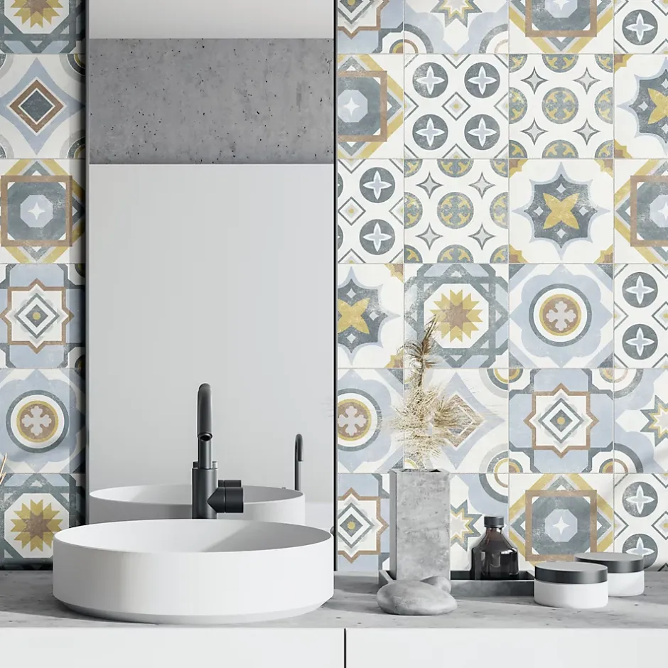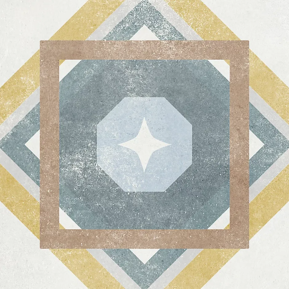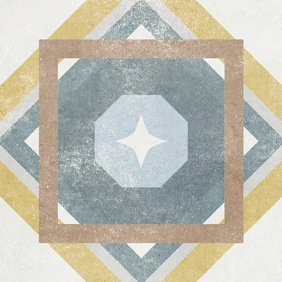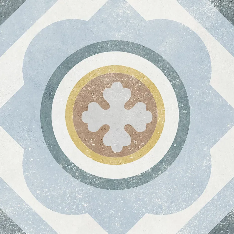 Carrelage sol et mur intérieur effet carreaux de ciment tons bleus et ocres L.20 x l.20 cm x ép.7,4 mm, Liberty bleu