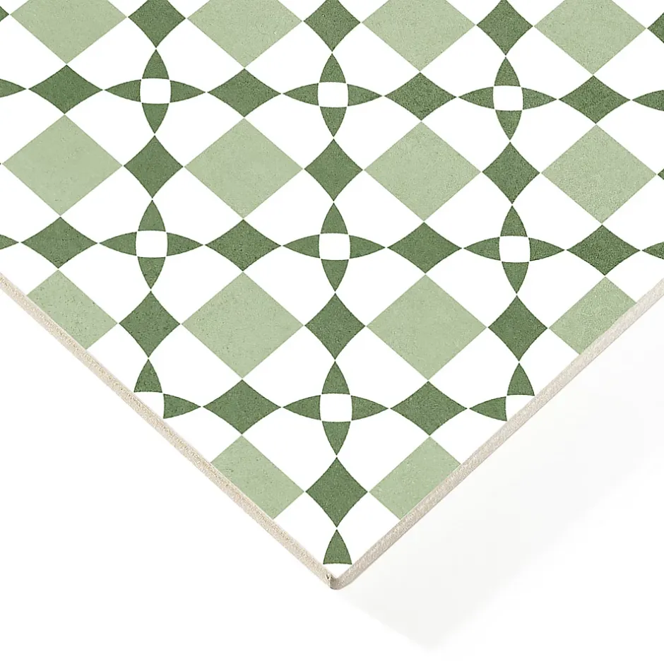 Carrelage sol et mur intérieur effet carreaux de ciment tons vert menthe L.20 x l.20 cm x ép.7,4 mm, Glamour Mint Mix