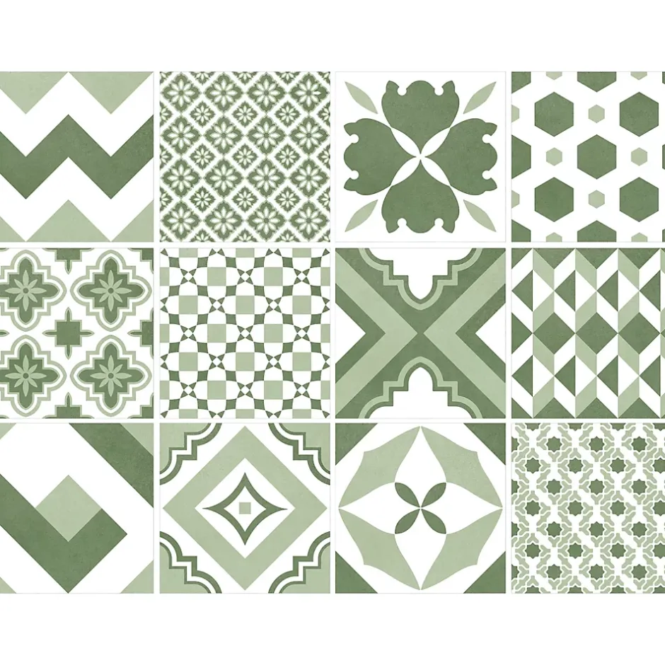 Le carrelage sol et mur Glamour Mint Mix apporte une touche d’originalité et de fraîcheur à votre intérieur. Avec ses motifs variés effet carreaux de ciment dans des tons verts, il crée une ambiance unique et personnalisée. Chaque boîte contient un mélange aléatoire de 12 décorations différentes, combinant motifs floraux et géométriques pour un rendu esthétique et harmonieux. Idéal pour murs et sols intérieurs, ce carrelage fabriqué en Italie allie esthétisme et qualité.