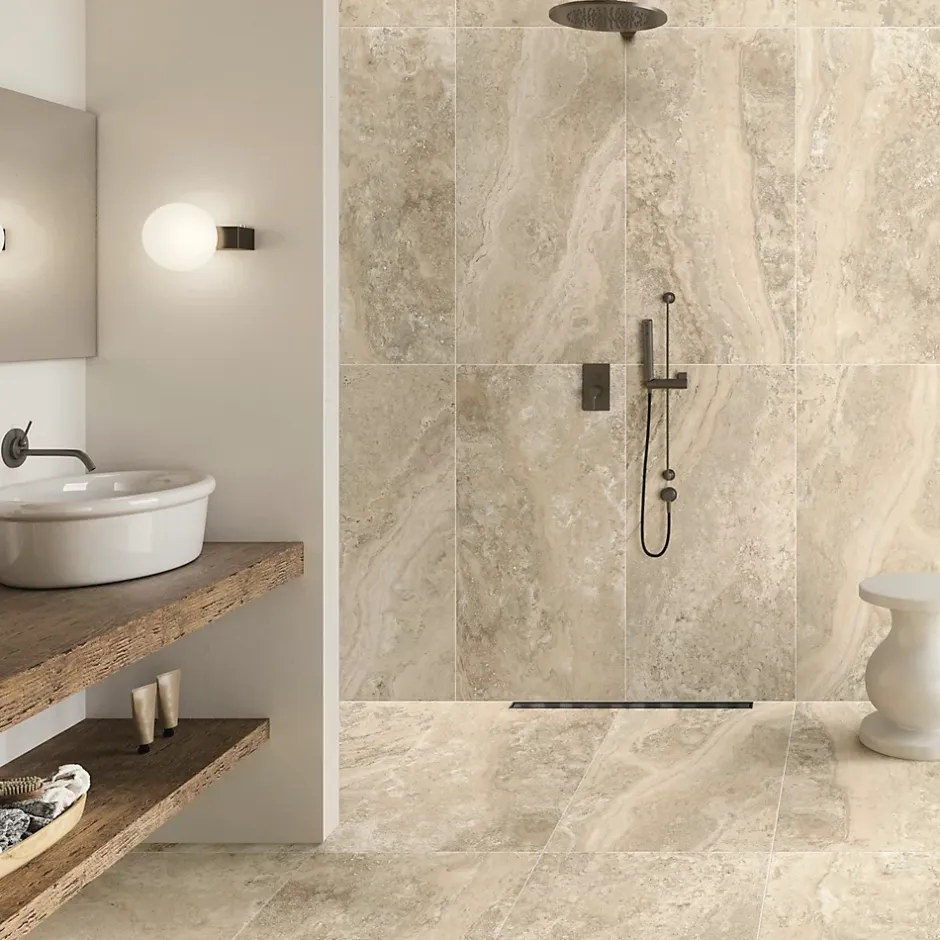 - L’aspect travertin authentique apporte une touche naturelle et élégante à votre intérieur.