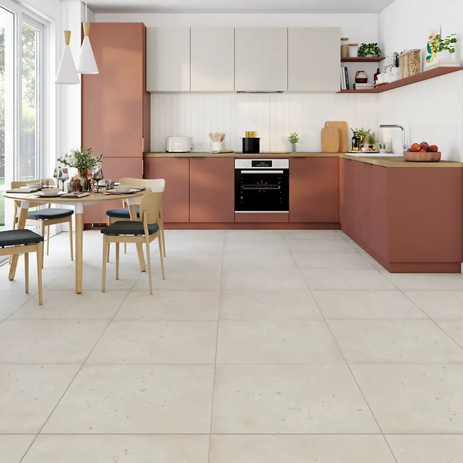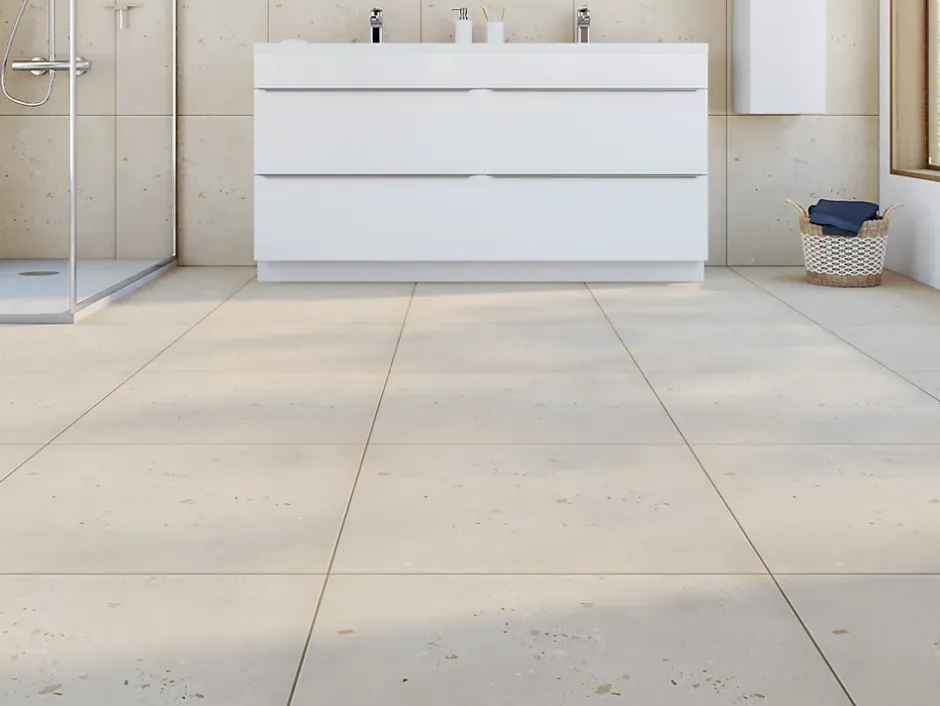 - Le carrelage est rectifié, ce qui permet des joints plus fins et un rendu plus uniforme.